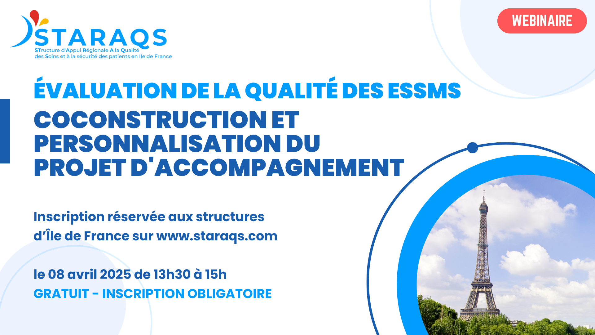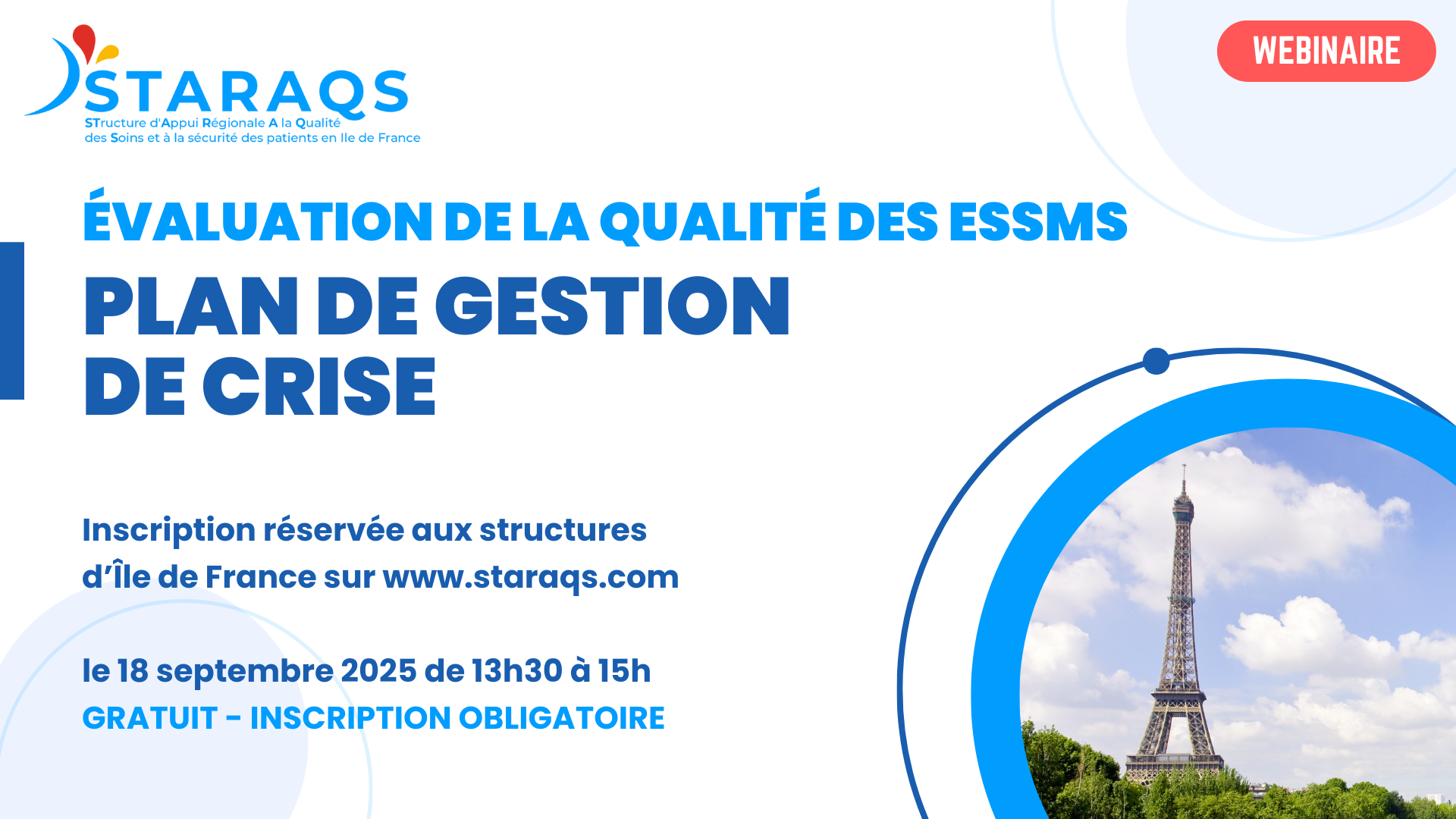 La STARAQS réalise depuis de nombreuses années des webinaires gratuits, en visioconférence. Ils s’inscrivent dans le programme d’actions conventionné avec l’ARS Ile de France.