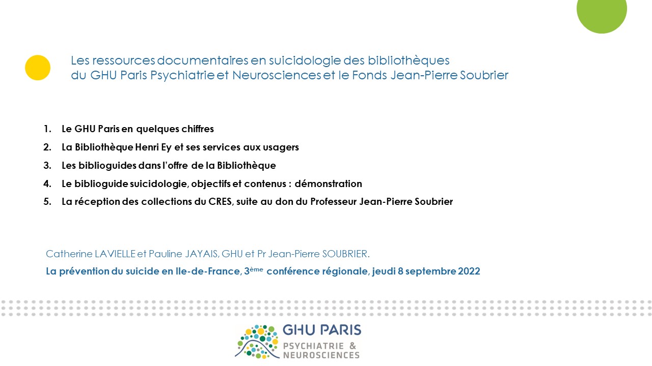 La 3ème Journée régionale de la prévention du suicide en Ile de France s’est tenue en présentiel le 8 septembre 2022 au grand amphithéâtre de l’hôpital Sainte Anne à Paris.